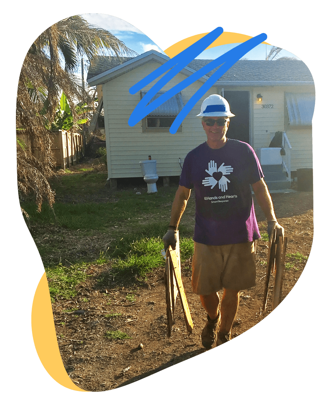 “As recently retired longtime business owners, we began to crave the rewards of working hard towards meaningful goals. For over two years we looked for the right opportunity, one that may benefit others. We came across All Hands and Hearts while reviewing highest rated volunteer opportunities on Charity Navigator.